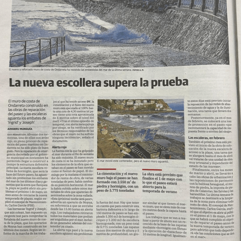 Estabilización del muro de costa en la playa de Ondarreta (Donostia)