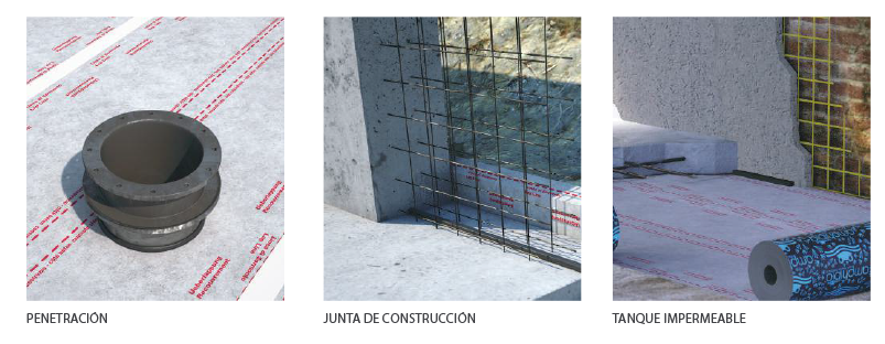 SOLUCIONA Y PREVIENE INFILTRACIONES DE: INTERRUPCIONES DE COLADA DE HORMIGON, JUNTAS DE CONSTRUCCIÓN, ELEMENTOS DE TRÁNSITO